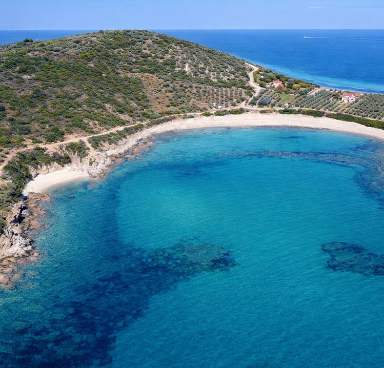 Elies Beach is a peaceful seaside spot with soft sand and clear, gently sloping waters. Framed by low greenery and scattered olive trees, it provides a calm, laid back atmosphere, making it perfect for a quiet swim or a relaxing day by the sea