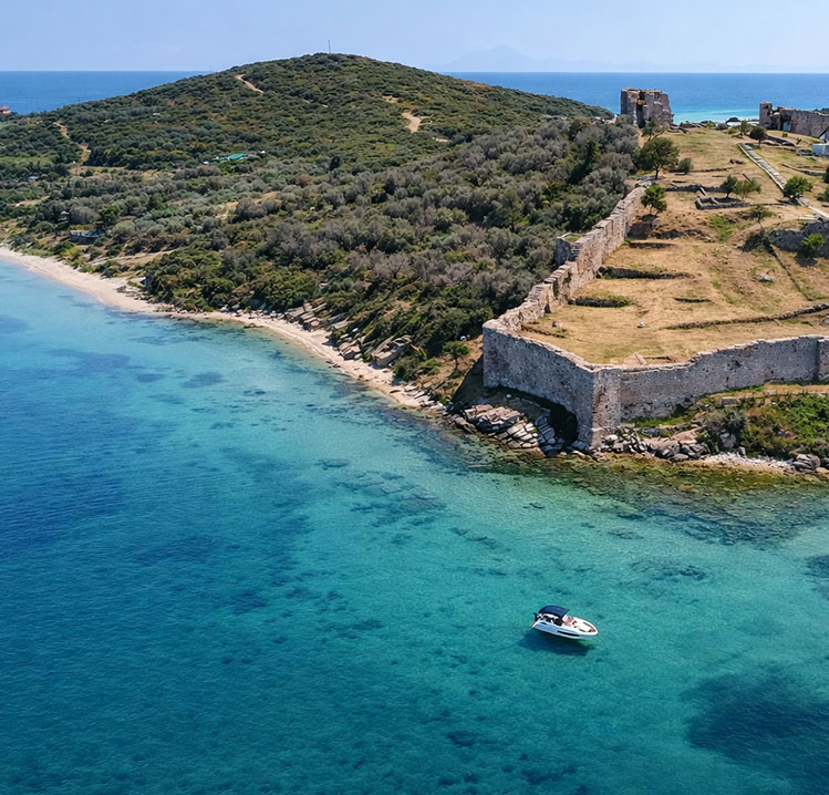 Fidonisi stands out for its natural beauty, with crystal clear waters and lush greenery reaching the shoreline. Exploring the area by boat reveals quiet corners and a calm, unspoiled setting ideal for a relaxing stop